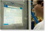 The different stacks of sections are therefore presented in the warehouse visualization in the form of coloured clusters. "This enables various lengths to be visualized very easily", explained Alexander Jung, a software developer at Falk. The conception went to such an extent that the storage jobs were initially simulated. "The virtual warehouse thinks in future terms and creates the possibility of calculating picking processes in advance." The aim here is to initially determine whether storage is possible at all and that before the storage and retrieval machine has received the corresponding travel commands. Falk has also developed a piece of animation software for the virtual warehouse so that it will be possible to quickly recognise the logistic processes which will take place at a later date. It displays the current occupancy of the warehouse and the movements of the storage and retrieval machine which has been designed by Falk. The idea behind this sophisticated system lies in the nature of a sectional door. They are normally individually installed, depending on the length and height. Whilst the cross cutter automatically specifies the section length at the end of the Kontilinie line from the job order, the later door size is determined by a combination of various section heights. These cannot however be manufactured simultaneously in a continuous production process, but when taking expensive retrofitting times into account, they are to be combined from various production batches. This results in an intermediate storage and an job-related picking. |